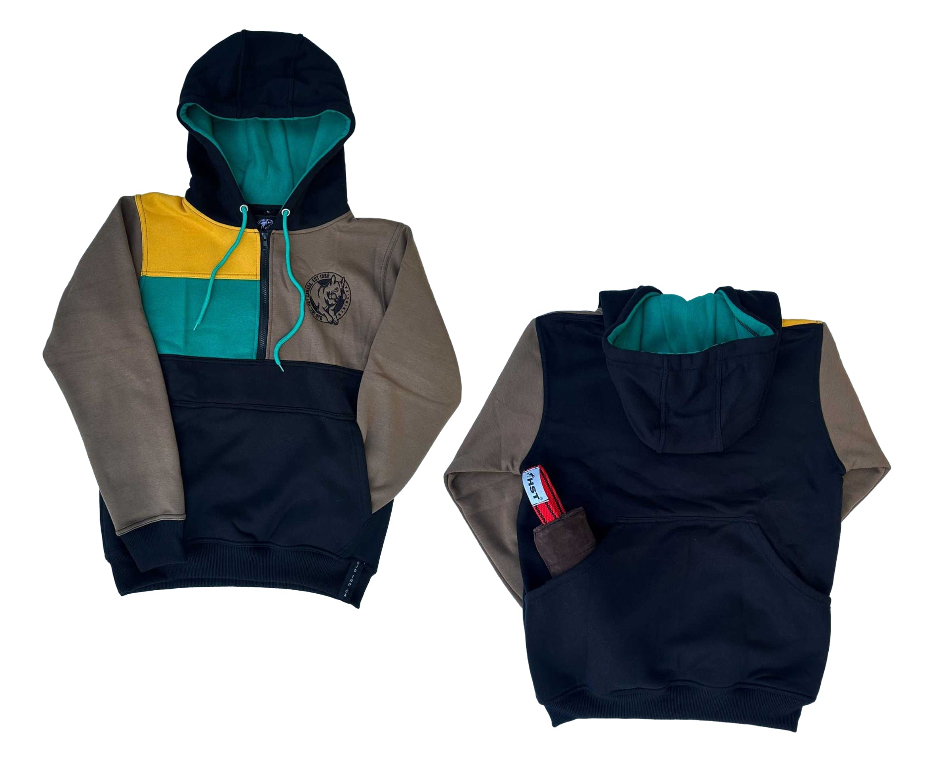 Heading out for some downtown socialization? A visit to a doggy cafe? Maybe a training client's home where you want to look a little more chic while still having room for rewards? Our fun half zip hoodie is for those looking to add a little chic to their canine trainer wardrobe in the popular 90s colour block mode!