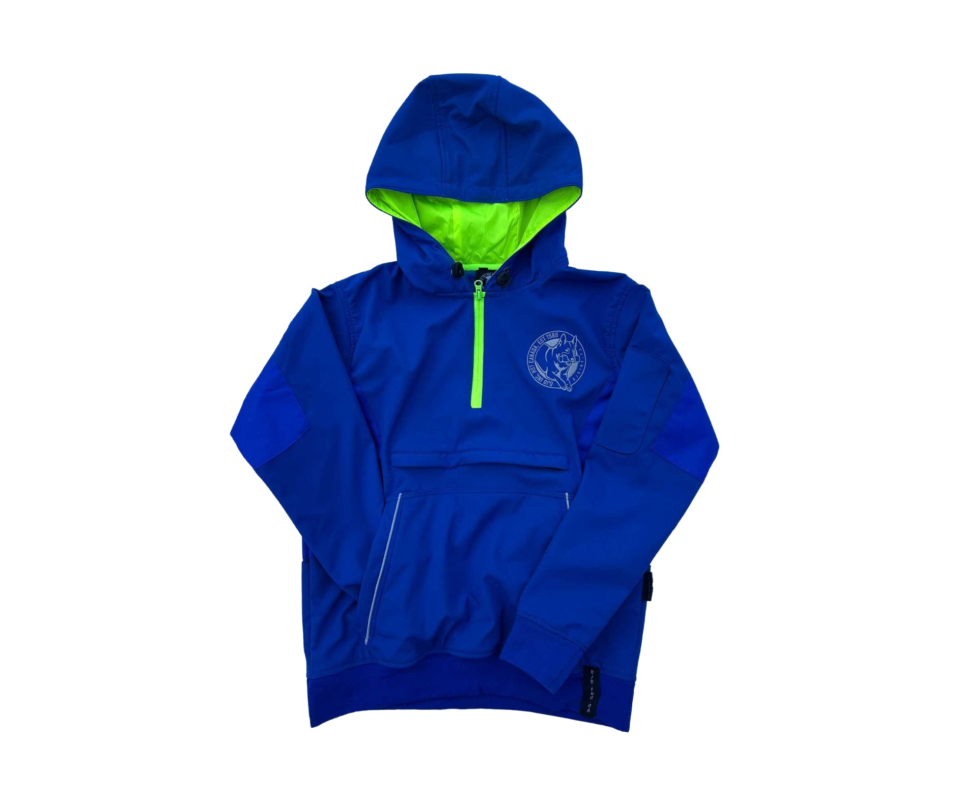 Bright royal blue with lime green features.