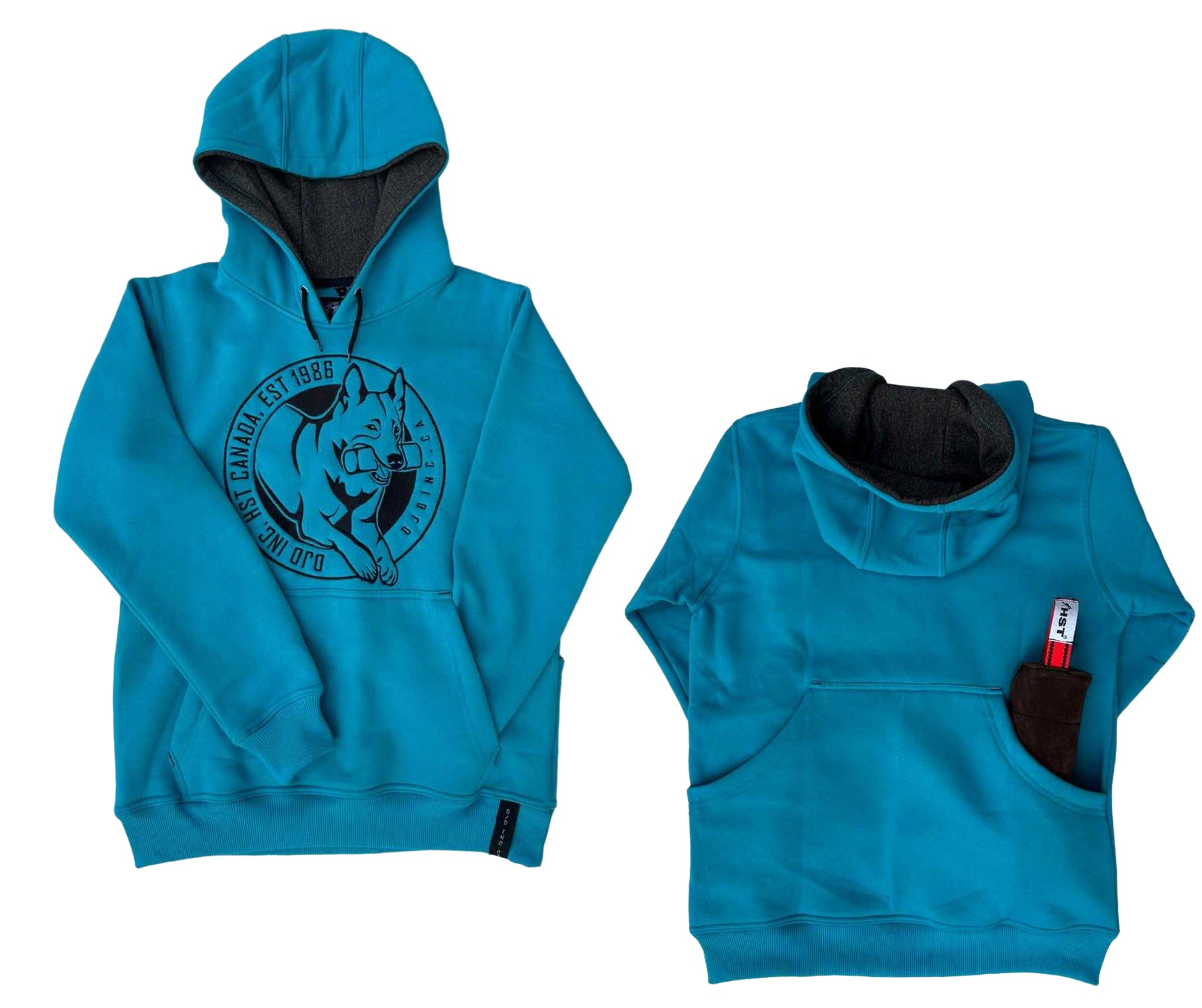 Our heavy-duty training hoodie is custom made to keep you warm on cold training days. This is not a lightweight sweatshirt by any means and our logo is embroidered, not printed.